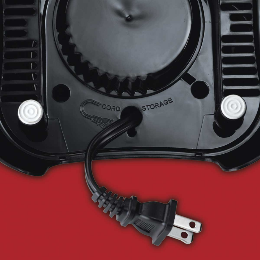 Cord storage makes it easy to put away.