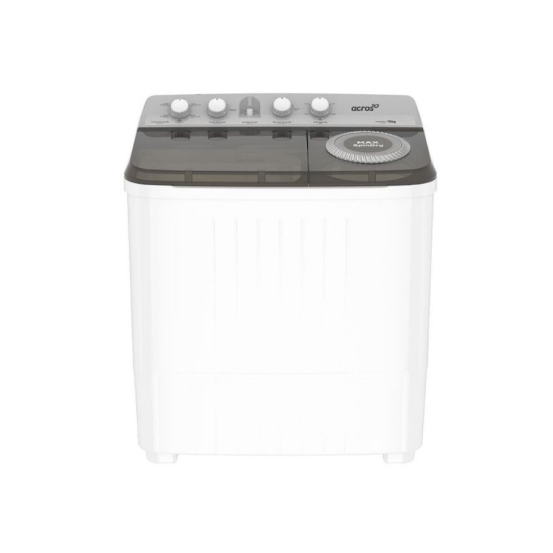 The Acros Semi-Automatic Washer 15kg (White) (SKU: ALD1545JE) is a top-load, twin-tub washing machine designed for large households, featuring an impeller washing system and MaxSpin Dry technology for efficient cleaning and faster drying.