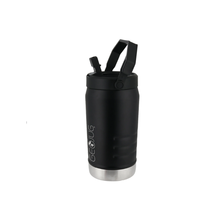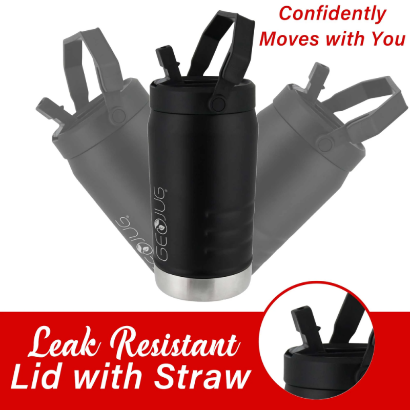 Use the the Brentwood GeoJug G-1200BK 40oz Stainless Steel Vacuum Insulated Sports Water Jug, Spout Straw Lid, Large Handle with Fence Hook to keep your favorite beverages hot up to 10 hours and cold up to 24 hours with no condensation. Always enjoy the pure taste of your drink thanks to tasteless and odorless pro grade stainless steel construction. An extra wide mouth for quick filling and easy cleaning. Thin and durable powder coat finish insures a slip free grip. Includes a uniquely designed spout straw lid with built-in, extra-large carry handle. Conveniently hang the sports jug on a chain link fence using the integrated fence hook on the handle. Stand out with our exclusive 2 tone black and brushed stainless steel finished insulated water bottle.