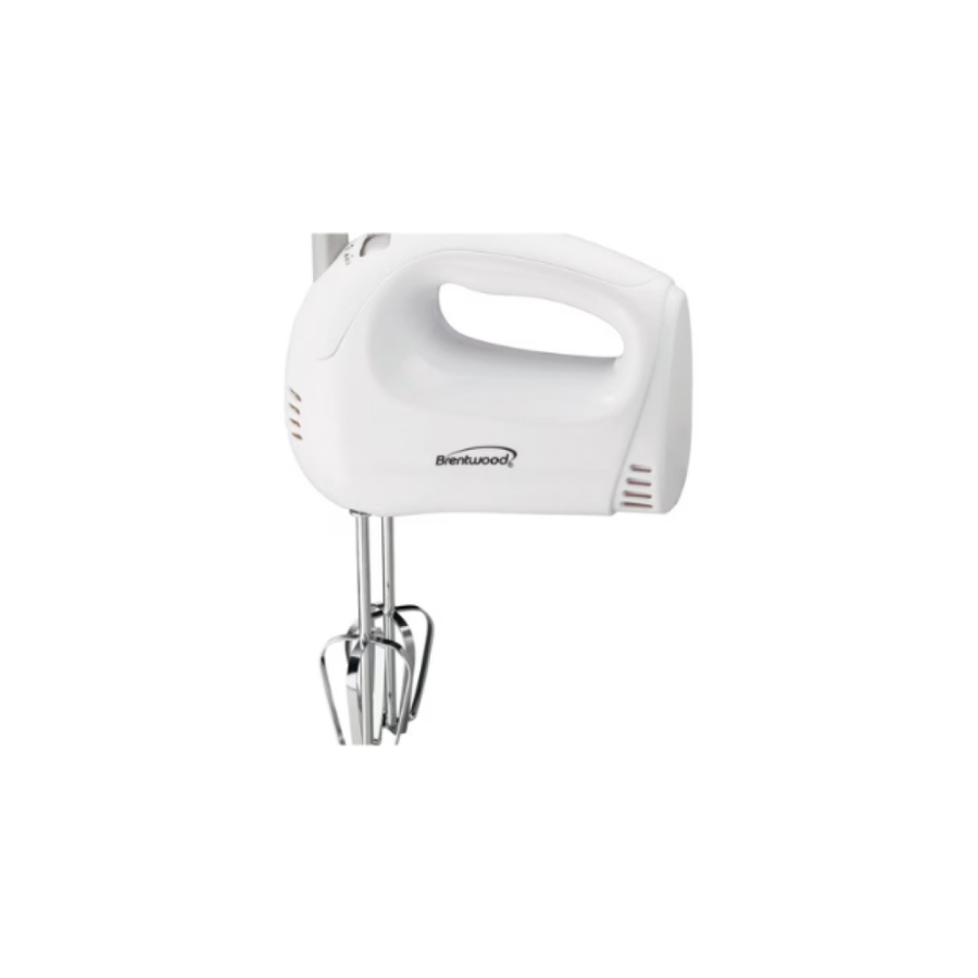 Brentwood makes your next culinary project easy with its 5-Speed Hand Mixer. This 150-watt mixer features two heavy-duty, chrome-plated beaters, five speeds and an ejection button for easy cleaning.