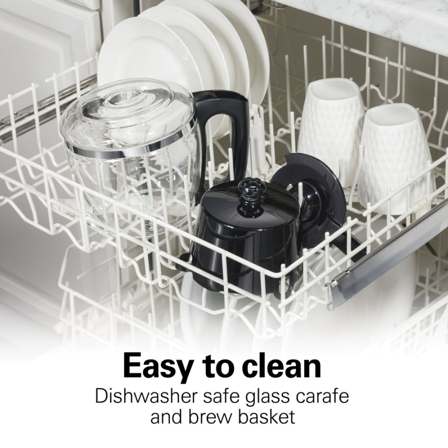 - -EASY TO CLEAN: The 12 cup borosilicate glass carafe and Lift & Clean brew basket are dishwasher safe, and the nonstick warming plate is nonstick and simple to wipe clean.