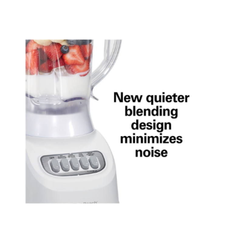 The 12 functions provide maximum versatility for every blending job, and the 5 simple buttons clearly indicate each function, so there's no guesswork. Built with a new quieter blending design, the Smoothie Blender minimises noise. Serving is easy because the BPA-free 48 oz. blending jar has a convenient pour spout to eliminate messy drips, and the removable filler-cap on the lid makes it easy to add ingredients as you blend. Built for long-lasting performance.