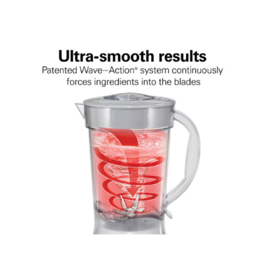The Hamilton Beach Smoothie Blender delivers ultra-smooth results every time you blend. With 650 watts of peak blending power and stainless steel Ice Sabre blades, you'll have all the power you need to crush ice and blend frozen fruit with ease.
