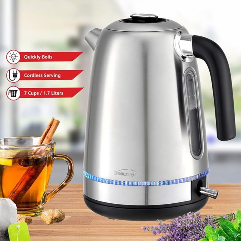 The Brentwood?Cordless Electric Stainless Steel Kettle boils water faster than a microwave and safer than a stove top kettle.?