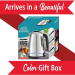 Water boils within minutes with a single push of a button. Gorgeous blue LED lights up the glass kettle while boiling. Cordless kettle lifts off the 360 swivel base for easy filling and pouring. Unit automatically shuts off once water reaches a boil.