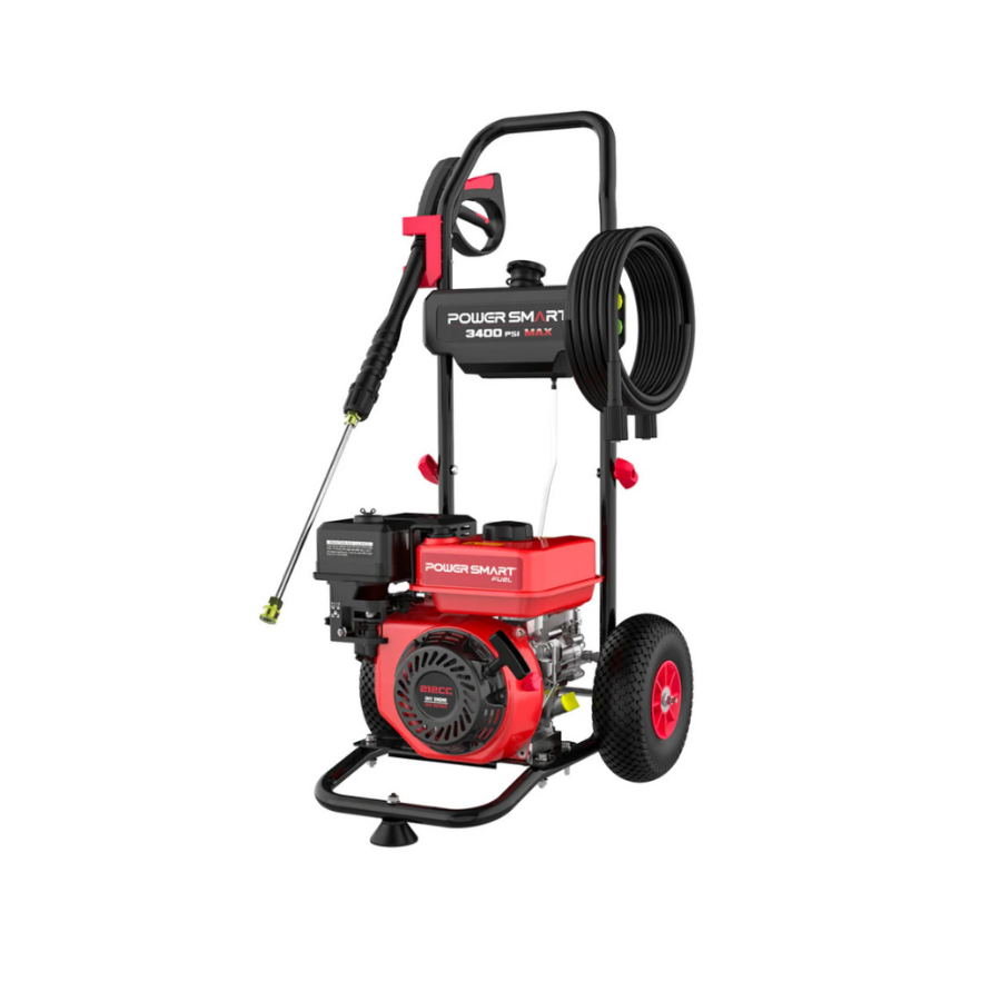 The PowerSmart 3400 PSI Gas Pressure Washer is a powerful, portable cleaning machine featuring a 212cc engine to deliver high pressure (3400 PSI) and water flow (2.5 GPM) for tough outdoor cleaning like driveways, decks, and siding, offering user-friendly features like easy start, onboard soap tank, and multiple nozzles for versatile, efficient dirt removal.