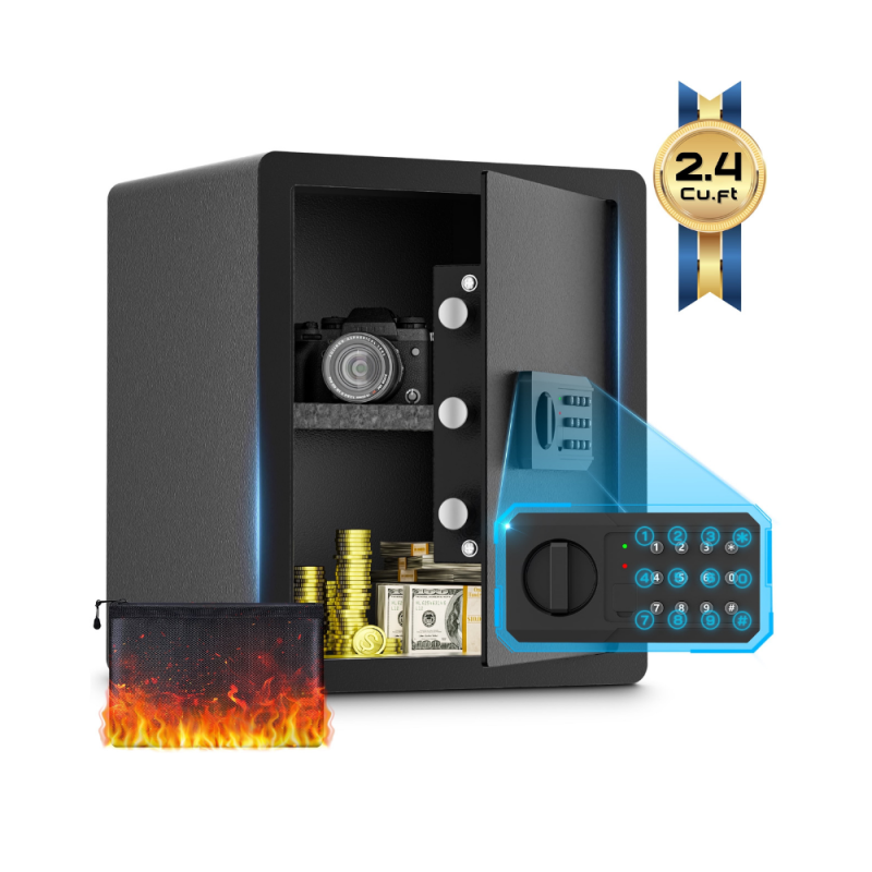 Srwtrchry Personal safe box 2.4cu, Home safe with password unlock and security alarm program, floor safe with large storage space and water proof fire bag