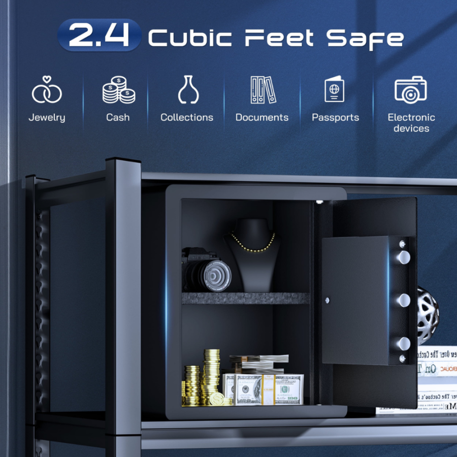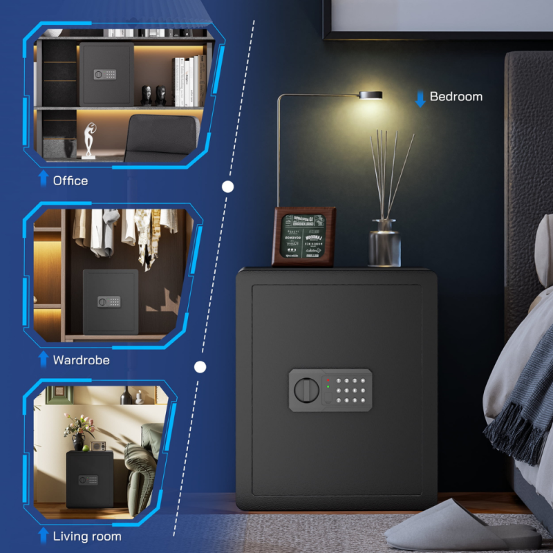 - 2.4 Cubic Safe Box】With its compact and spacious design, it comes with removable shelf, making it perfect for storing items around the home such as cash, medications, jewelry, sensitive documents, electronic storage drives, spare credit cards, and firearms. It can be easily placed in a closet, cabinet, shelf, drawer or nightstand as a hotel safe, closet safe, wall safe and dorm safe. Concealed and flexible (flexible and easy to hide), Ideal for home, office