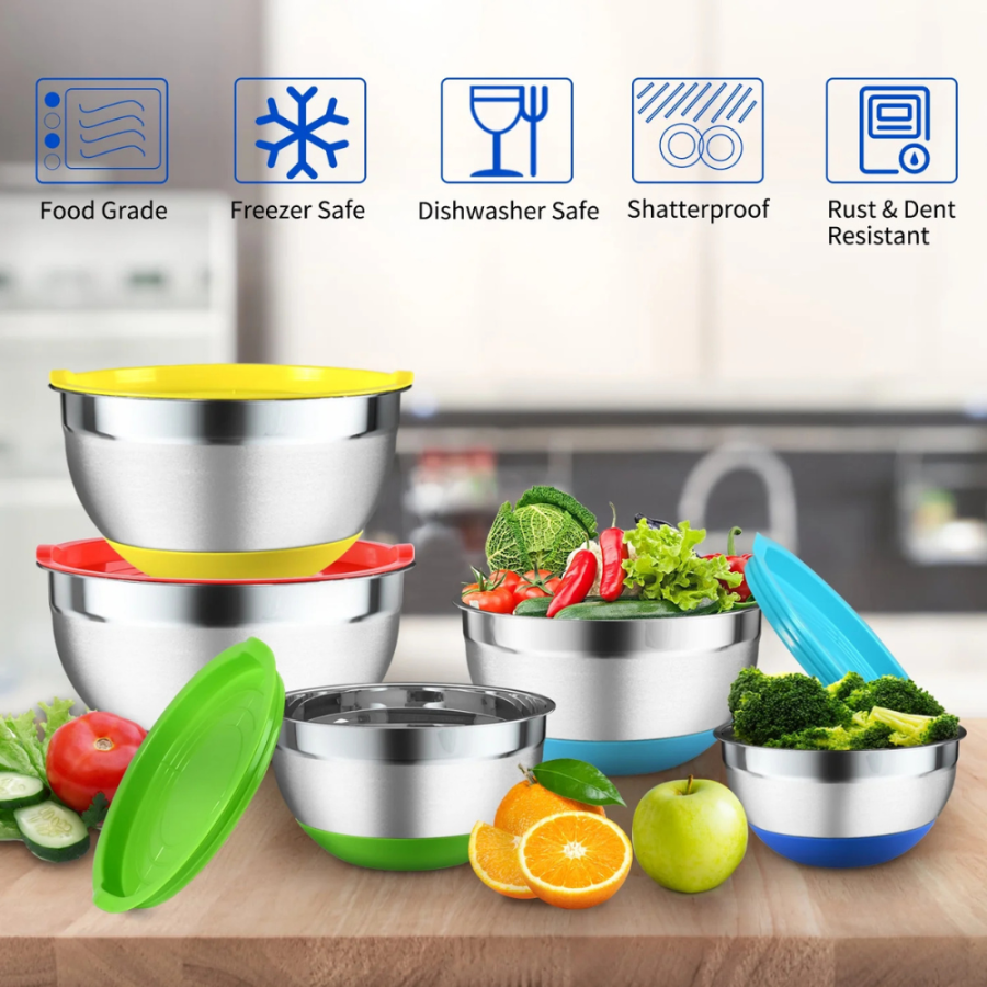 Stainless Steel Mixing Bowls with Lids Includes: